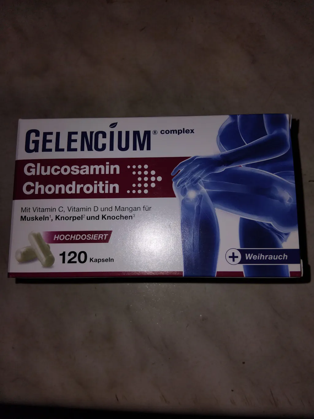 GELENCIUM Glucosamin Chondroitin ist ein modernes, hochdosiertes Komplexpräparat der führenden Arthrose-Apothekenmarke GELENCIUM. Dieses kombiniert erstmalig die essenziellen Gelenkbausteine Glucosamin und Chondroitin mit Weihrauch und ausgewählten Mikronährstoffen für die Gelenkgesundheit. Im Wettbewerbsvergleich herausragend ist die einzigartig hohe Tagesdosis von 2.325 mg Glucosaminsulfat und Chondroitinsulfat. Als ideale Ergänzung ist Weihrauch mit den wertvollen Boswelliasäuren enthalten. Die optimal aufeinander abgestimmten Mikronährstoffe Vitamin C, Vitamin D und Mangan unterstützen die Gelenkgesundheit (Knorpel2, Knochen3, Muskeln5, Bindegewebe6) zusätzlich.